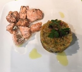2 rodajas de salmón sin piel y a dados