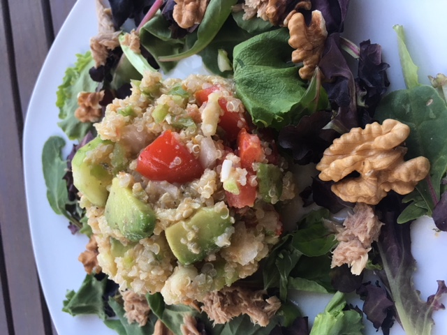 (3)ENSALADA DE SALMÓN, QUINOA, QUESO FETA Y VERDURAS